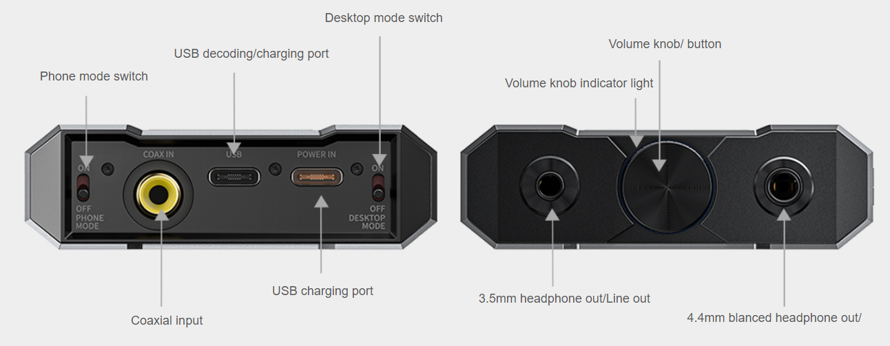 FIIO engineers implemented a “Phone Mode” switch to make the Q15 better suited for use with phones. Turn on Phone Mode* and the Q15 will be powered by the built-in battery, not consuming the phone’s battery.