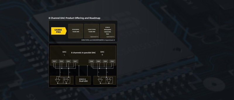 *The ESS SABRE PRO series of DAC chips are mainly used in high-end audio systems and professional audio gear. The first generation of products included the flagship ES9038PRO, and the second generation of products included the new flagship ES9039PRO and EES9027SPRO.