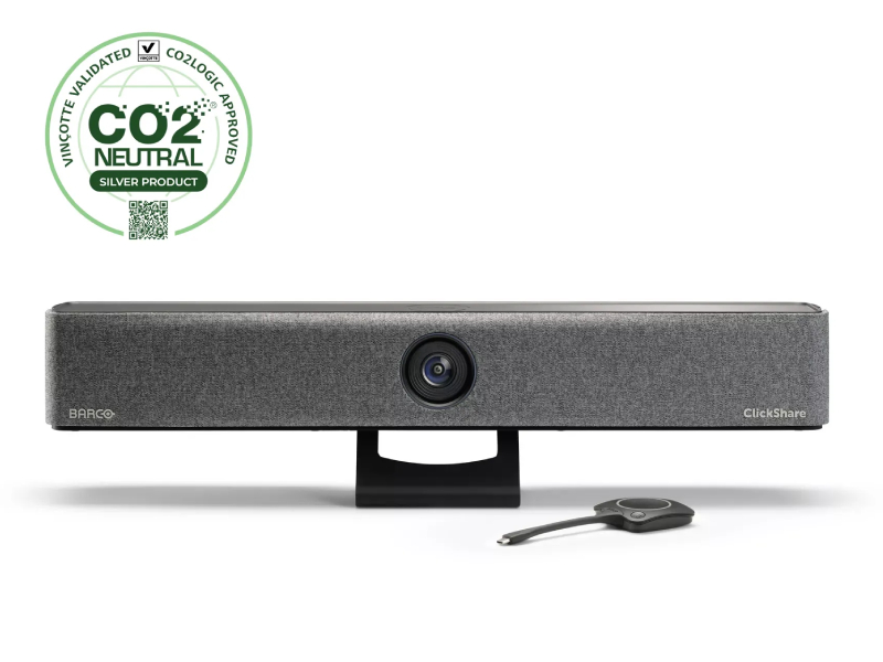 ClickShare Bar Core is a carbon-neutral, all-in-one video bar that enables engaging, effortless wireless conferencing in small meeting rooms and huddle spaces with any videoconferencing platform.