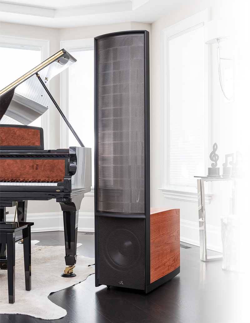 Masterpiece Series speaker cabinet dimensions create an ideal relationship between the woofers, cabinet volume, and amplifiers in their PoweredForce woofer systems. By providing ample internal volume for the woofers (two sealed enclosures—one per woofer) along with powerful amplification, Masterpiece Series speakers with powered woofer systems are capable of reaching the lowest registers with authority while preserving bass detail.