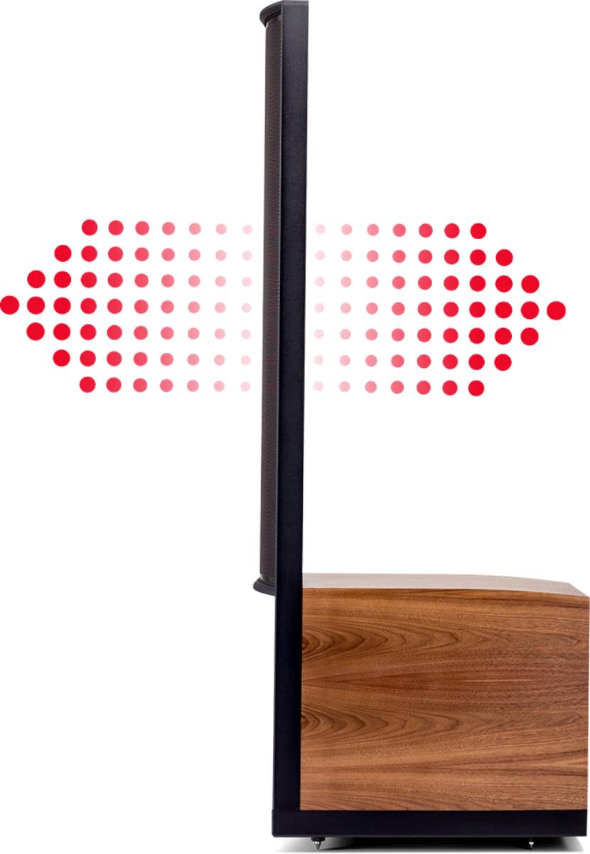 CLS technology is an essential ingredient of every electrostatic loudspeaker we produce. Through our proprietary manufacturing method, we have built-in the panel’s gentle horizontal curvature. This unique design enhances the high frequency detail produced by the large radiating surface, without compromising overall sound quality. Notice how the gentle modern curve and perforation pattern gives way to the flat grille of the woofer section.