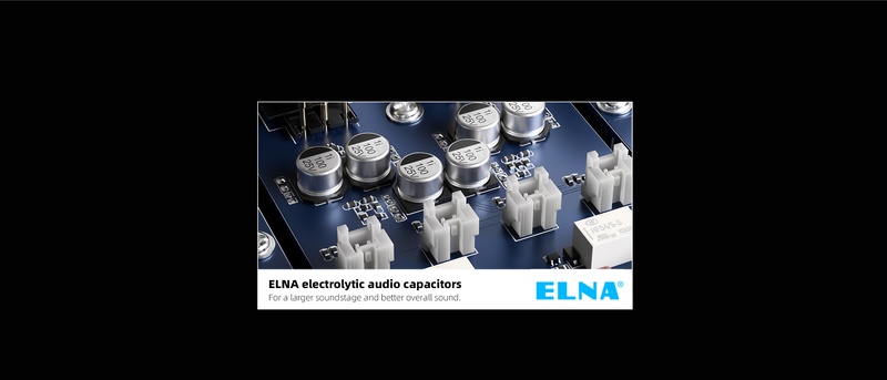 The S15 is powered by a custom high-quality low-noise transformer that ensures the purity of the power supplied. It is also equipped with four 4700μF ELNA audio capacitors that serve as an ample power reserve for continuous power.