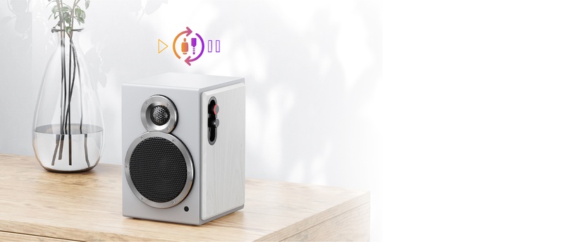 The SA1’s cabinet is made of high-density MDF with a thickness of up to 12mm. The top and sides of the cabinet adopt a 9mm thick imitation solid wood veneer, which can effectively reduce sound resonance for a purer and more natural sound. To simplify the frontal design of the SA1 looks more concise and to achieve better sound, the SA1 uses a rear guide tube design that allows for bass extension down to 65Hz, giving these compact speakers a big punch.
