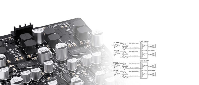 Being a desktop active speaker, the internal amplification is extremely important. The SA1, like the SP3/SP3 BT, is equipped with two Texas Instruments TI TPA3118 Class D digital amplifiers. The main and auxiliary speakers each are driven in four ways, with woofer output power up to 20W*2 and tweeter output power up to 5W*2. The TPA 3118 has high conversion efficiency and features low noise, ensuring the purity of the audio signal.