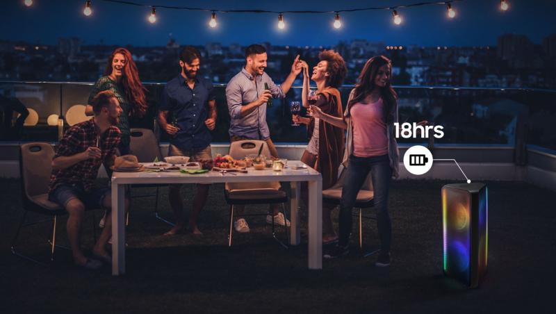 With 18 hours of long lasting built in battery, enjoy the party anywhere you go.