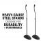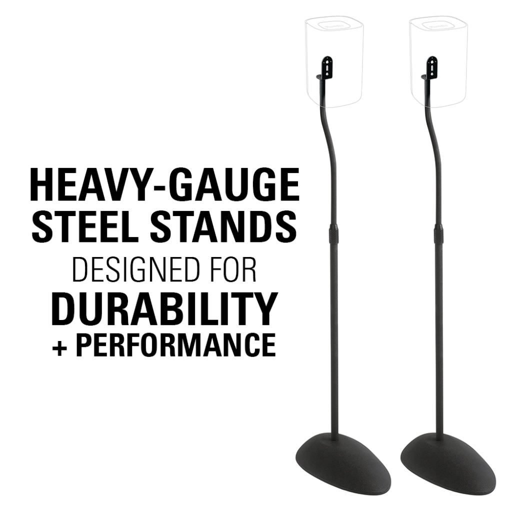 Designed for durability and performance with heavy gauge steel pillars and a solid steel base, the streamlined design with black powder coat finish complements the sleek look of today’s wireless speakers.
