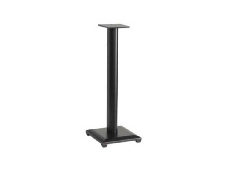 The SANUS Natural Series NF30 is a 30-inch stand for small bookshelf speakers up to 25 lbs. Its black-lacquered MDF base includes adjustable carpet spikes and screw-in polyester feet for stability. A solid hardwood pillar supports a 6 by 6-inch top plate with adjustable-height brass studs and neoprene pads to provide superior isolation and resonance damping for speakers. A patented wire management channel conceals and protects cables. This product is sold as a pair.