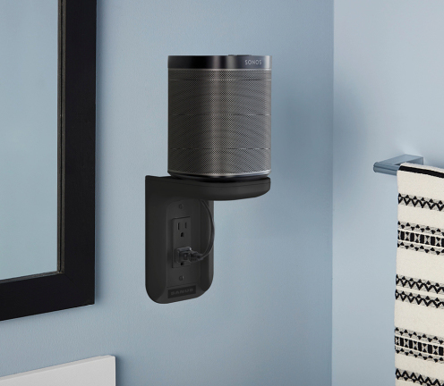 - Sleek over-the-outlet shelf designed to seamlessly integrate Sonos One, Sonos One SL, PLAY:1, and other smart speakers and devices into the home