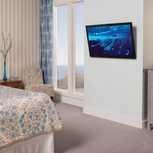 SANUS Premium Series VMT5 tilting mount gives you the best view from the floor or couch. Fingertip tilt allows for easy TV adjustments, and mount tilts TV back for easy cable access. TV can slide from side-to-side for perfect positioning on the wall, and safety tab provides a safe and easy connection you can hear.