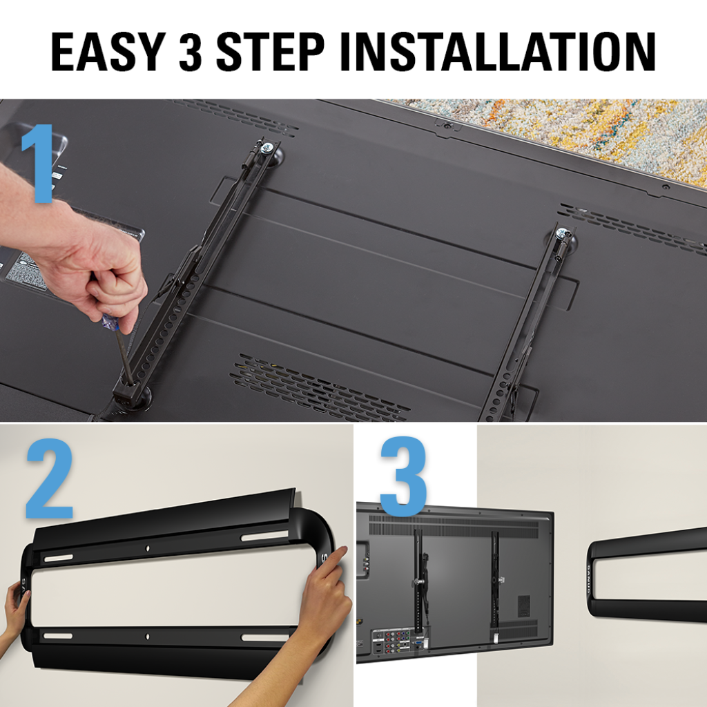 - Leveling adjustments allow TV to be perfectly positioned after hanging