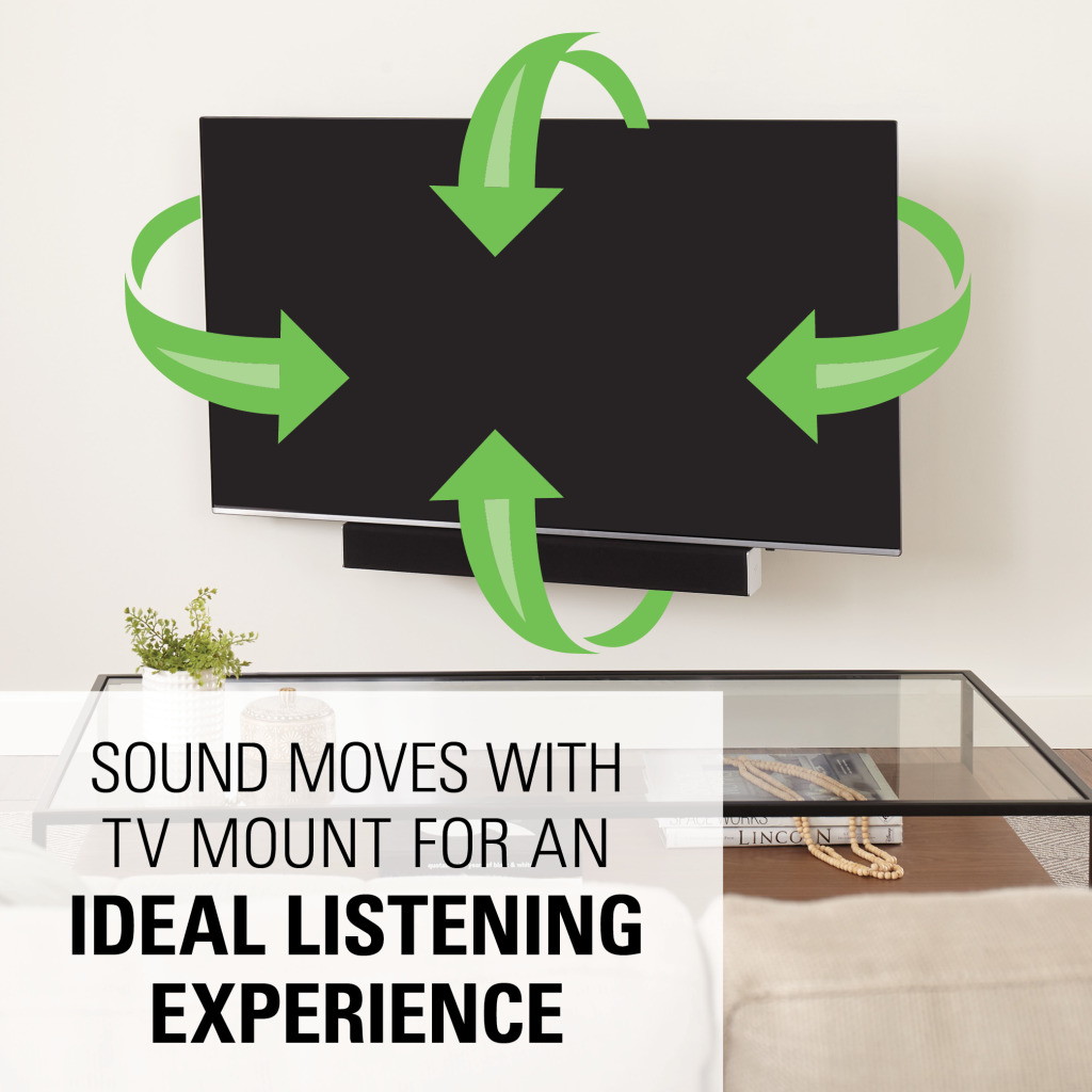 - When used with a full-motion TV mount, soundbar moves with TV screen