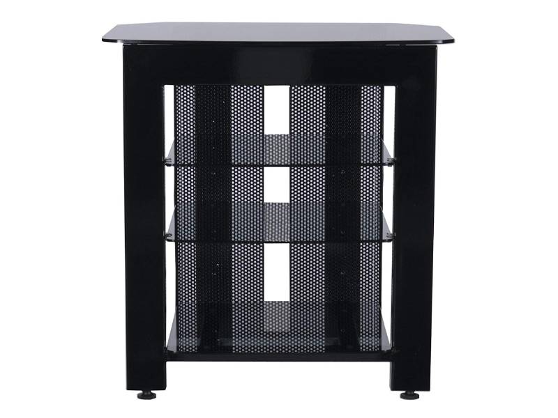 The SANUS Steel Series SFA29 is a four-shelf AV stand featuring heavy-gauge steel construction and crisp, clean lines to create a modern, sophisticated look. Its tempered-glass top and shelves are extra-thick to support most any TV and AV component systems. Features include a wire management path to neatly route cables, an aesthetic perforated steel back panel, open architecture for maximum airflow, and adjustable feet to ensure level and secure positioning on any floor surface.