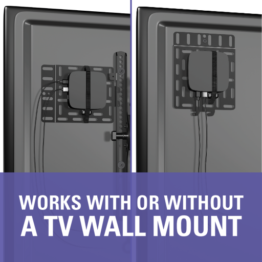 The SASP1 Streaming Device Panel securely hides small AV streaming devices and TV accessories behind your TV. Designed to hold most small devices up to 3 lbs., it easily attaches to your TV mount or directly to your TV. Mounting hardware and straps are included to ensure a secure installation.