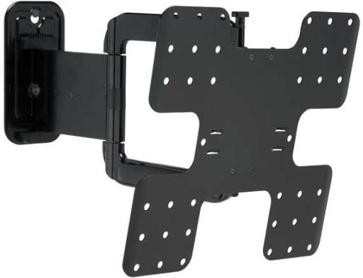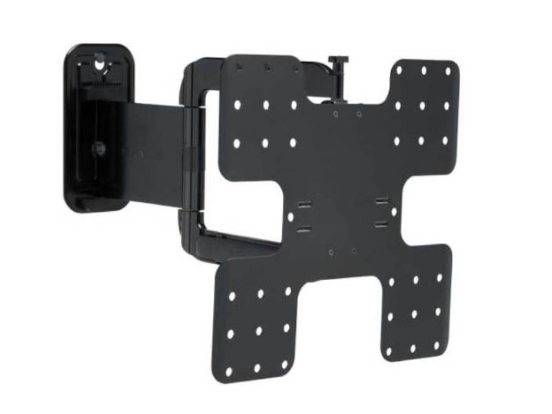 The SANUS VMF322 Super Slim full-motion mount places 32" – 50" TVs just 1.4" / 3.5 cm from the wall, yet extends 22" / 56.1 cm from the wall and allows full-motion capabilities. The VMF322 features fingertip tilt technology, which allows easy TV angle adjustments with the touch of a finger. With its integrated cable management system, the VMF322 keeps loose cables organized and concealed within the extension arm for a clean appearance without compromising TV motion. Its post-installation leveling adjustment ensures the TV is perfectly positioned on the wall. The VMF322 always has a finished appearance with a decorative cover that conceals assembly and mounting hardware.