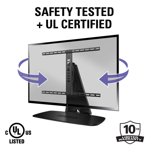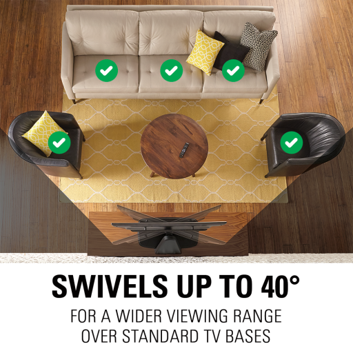 - Improves viewing angles (over traditional TV stand) by allowing up to 40 degrees of swivel.