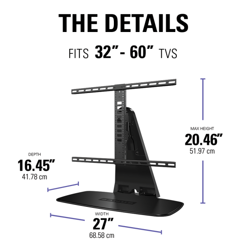 - Integrated cable management helps conceal unsightly power and HDMI cables.