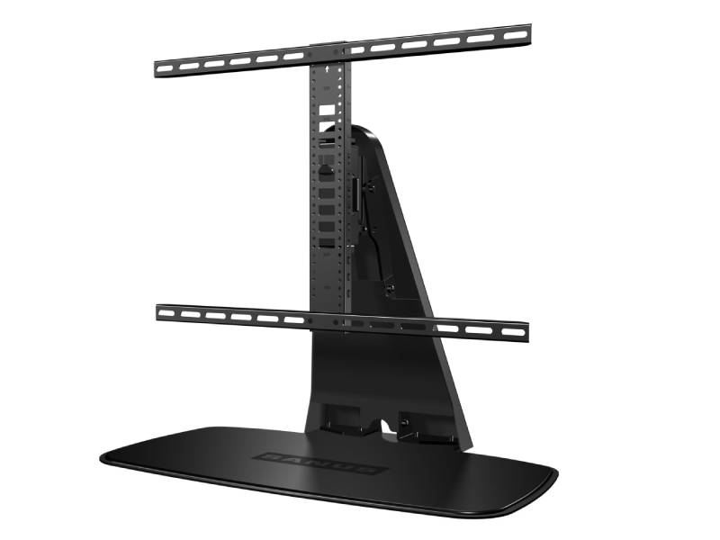 The Swiveling TV Base, a table-top TV base that recreates the sleek look and feel of a mounted TV. Designed to be compatible with the newly-announced Sonos® home theater speaker, PLAYBASE™, the Swiveling TV Base provides up to 8 inches of height adjustability creating space to fit a Sonos PLAYBASE or PLAYBAR below your TV.