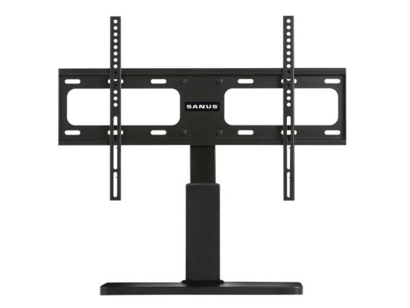 The SANUS Swivel TV Base is a table-top TV base that works on all surfaces, and is a substantial improvement over the stands that are traditionally included with TVs. By providing 74 degrees of swivel left to right, the Swivel TV Base dramatically improves viewing range by allowing you to point the TV to where you are seated. The stable footprint is optimal for TV stability for furniture with shallow depth, and the adjustable height provides a sleek look for the perfect set up.