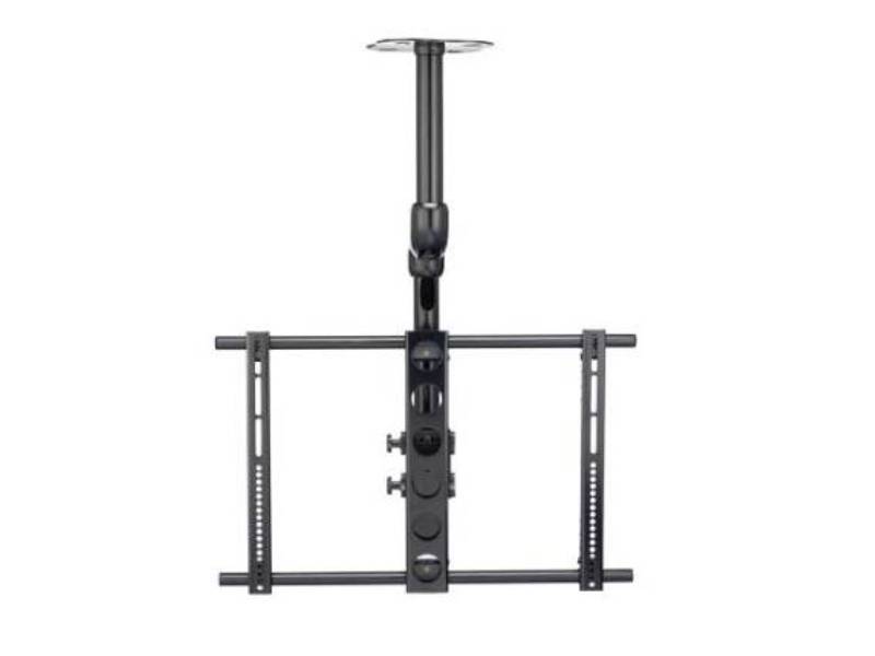 - Unique wire management channel conceals and routes cables from ceiling to TV.