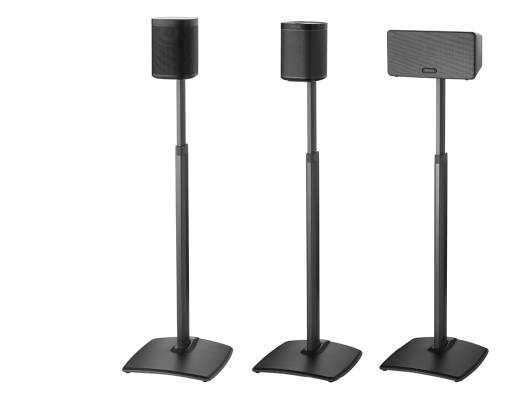 The SANUS WSSA, Height-Adjustable Speaker Stand, fits the Sonos™ ONE, Sonos One SL, PLAY:1 and PLAY:3 wireless speakers. Offering 16" of effortless sliding height adjustment and compatibility with the Sonos PLAY:3 in either horizontal or vertical orientation, the WSSA is sure to deliver optimal audio performance regardless of your listening needs. Durable, anodized aluminum construction not only resists wear, but also perfectly complements Sonos speaker aesthetics for a sleek, seamless look. Stands are sold as single pieces or in pairs to accommodate any sort of system arrangement, be it home theater, surround sound, or ambient listening. For a completely cable-free solution, our Press Fit cable management technology secures cords down the back of the stand for concealment. Assembling easily in 15 minutes and featuring 16” of tool-free height adjustment, you’ll be enjoying perfect sound from this sleek stand in no time.