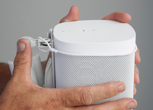 - Your Sonos ONE stays securely mounted via exclusive InvisiGrip™ technology, using two ultra-thin yet ultra-strong, virtually invisible wires wrapping around the top and bottom of your speaker, snugly holding it in place