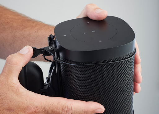 - Your Sonos ONE stays securely mounted via exclusive InvisiGrip™ technology, using two ultra-thin yet ultra-strong, virtually invisible wires wrapping around the top and bottom of your speaker, snugly holding it in place