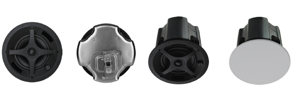 The optional Square Grille Adapter allows speakers to match the aesthetic of square downlights and HVAC grilles to achieve continual sight lines.