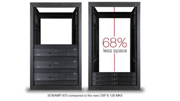 The new DSP amplifiers are engineered to be smaller yet more powerful than previous Sonamp models. The resulting power density allows for 130W or 150W in a mere 1U rack space while maintaining an industry-leading 93% energy efficiency.