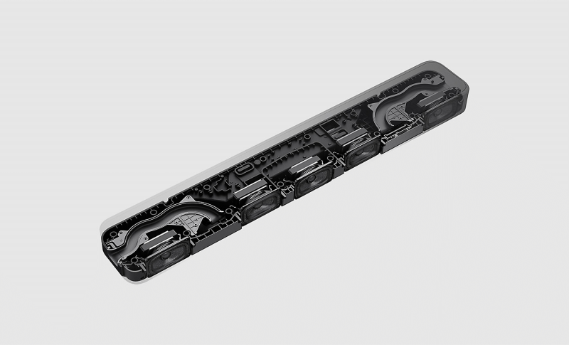 A combination of our latest acoustic and signal processing technologies is the foundation for recreating a vast sound stage. The centre speaker ensures clear dialogue, while the built-in dual subwoofer delivers you deep bass.