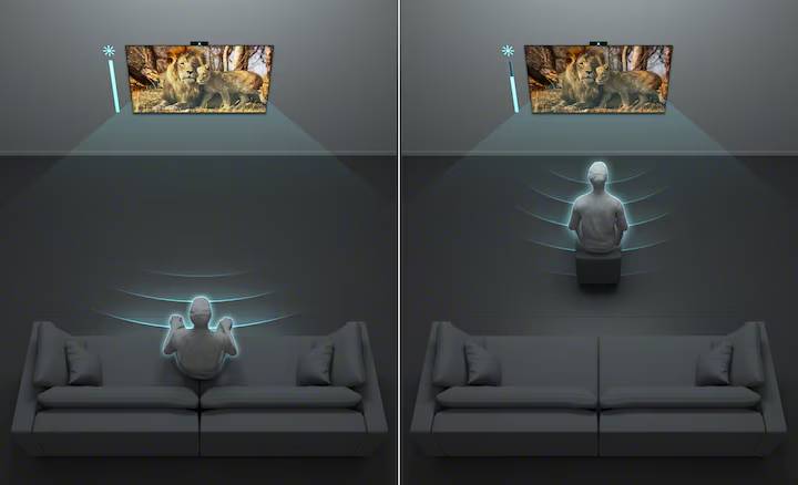 By detecting your viewing distance, BRAVIA CAM is able to adjust voice zoom automatically so you can hear dialogue clearly. The volume of TV dialogue increases when you move away from the TV and decreases when you get closer.