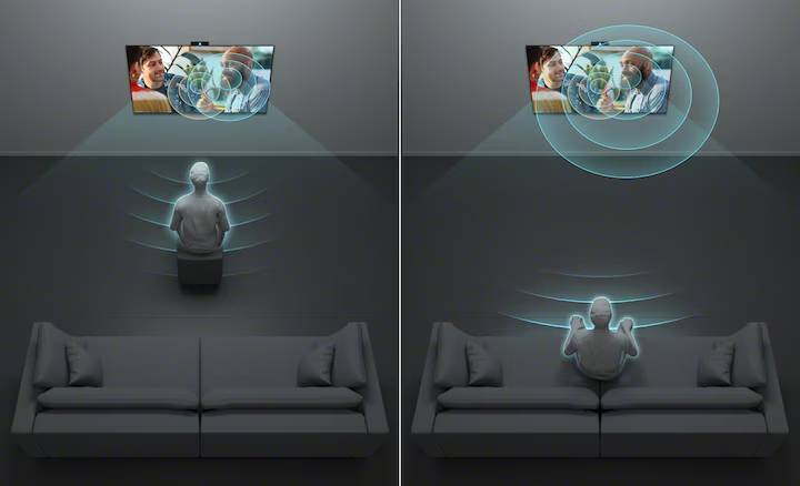 BRAVIA CAM follows you and your position, even if you are watching from the sides, then adjusts left and right sound balance for optimum acoustics. Wherever you are in the room, you’ll enjoy the same sound quality as if you’re sitting right in front of the TV.