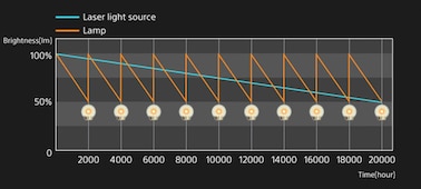 You’ll never have to worry about changing the lamp in your home cinema projector—no lamp replacement and virtually no maintenance are required. The VPL-XW5000ES uses an ultra-pure and reliable Z-Phosphor™ laser light source, which lets you enjoy perfectly clear 4K pictures at optimal brightness for up to 20,000 uninterrupted hours.