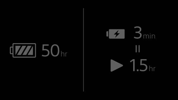 With up to 50 hours of battery life, you can listen to your favourite music without worrying about running out of charge. And, if your headphones battery is running low, a three-minute quick-charge can give you 1.5 hours of listening time.
