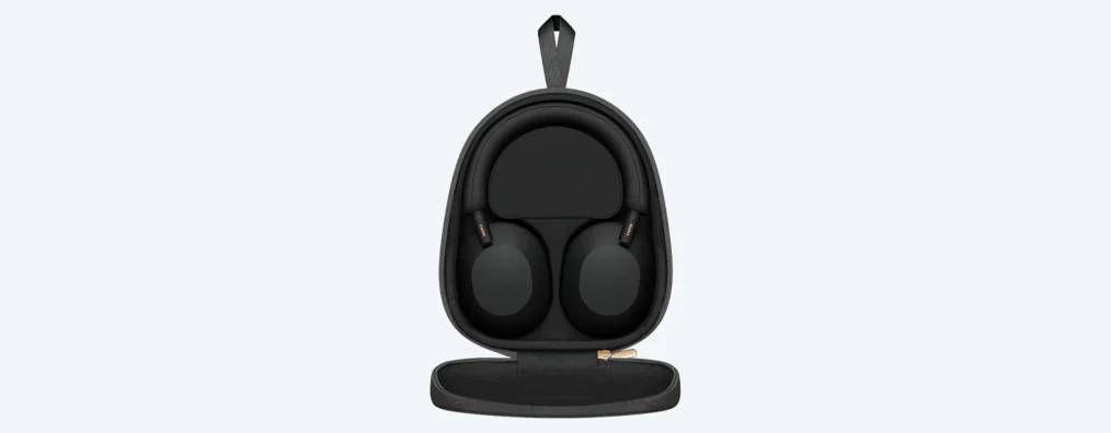 Open up the packaging of your WH-1000XM5 headphones and you’ll find a carrying case, headphone cable (approx. 1.2 m) and USB charging cable.