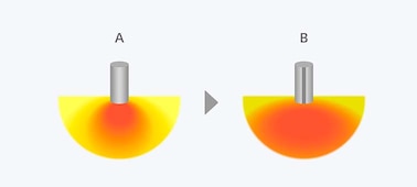 With the Line-Shape Diffuser, the sound spreads further to the front area of the speaker allowing you to enjoy the same sound quality whether you are at the front or to the side of the speaker. This means that everyone in your venue can dance to the same music, feeling the same sound quality. A=Conventional Service Area B=Wider Service Area with Line-Shape Diffuser
