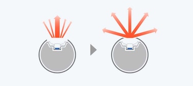 Unlike a conventional speaker, with most of the energy focused from the centre of the cone, our unique Line-Shape Diffuser refocuses the sound through a narrow aperture. The increase in sound pressure energy spreads the audio equally in each direction both further and wider out from the speaker.