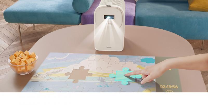Just connect the Touch Stand to enjoy interactive touchscreen projection. Tap around where you've projected on — a counter, desk or dining table — and easily navigate your work and play. Use your finger to select the game you want and interact with it, like moving around the pieces in a puzzle.