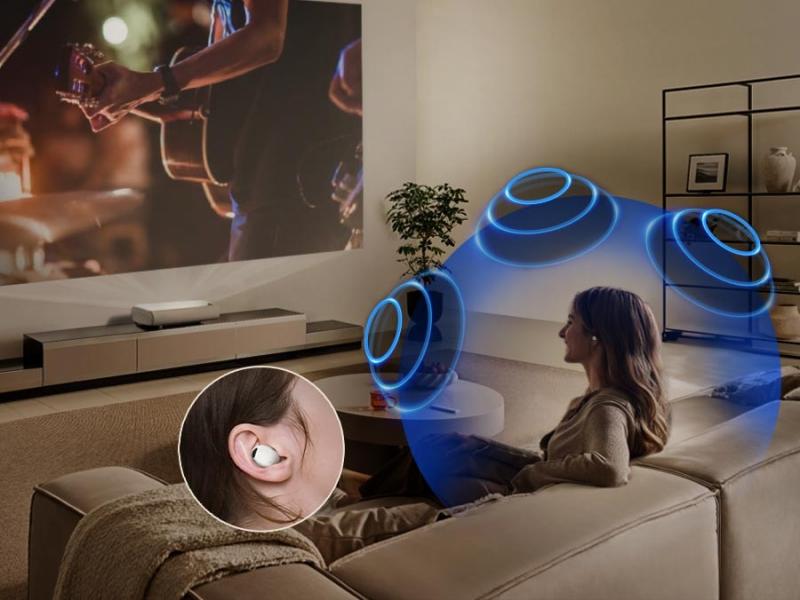 Paired with Galaxy Buds, 360 Audio Mode makes sounds from The Premiere feel immersive. Direct Multi-Channel and enhanced head tracking can even pinpoint the direction of the sound as you move your head for a spatial 3D experience.