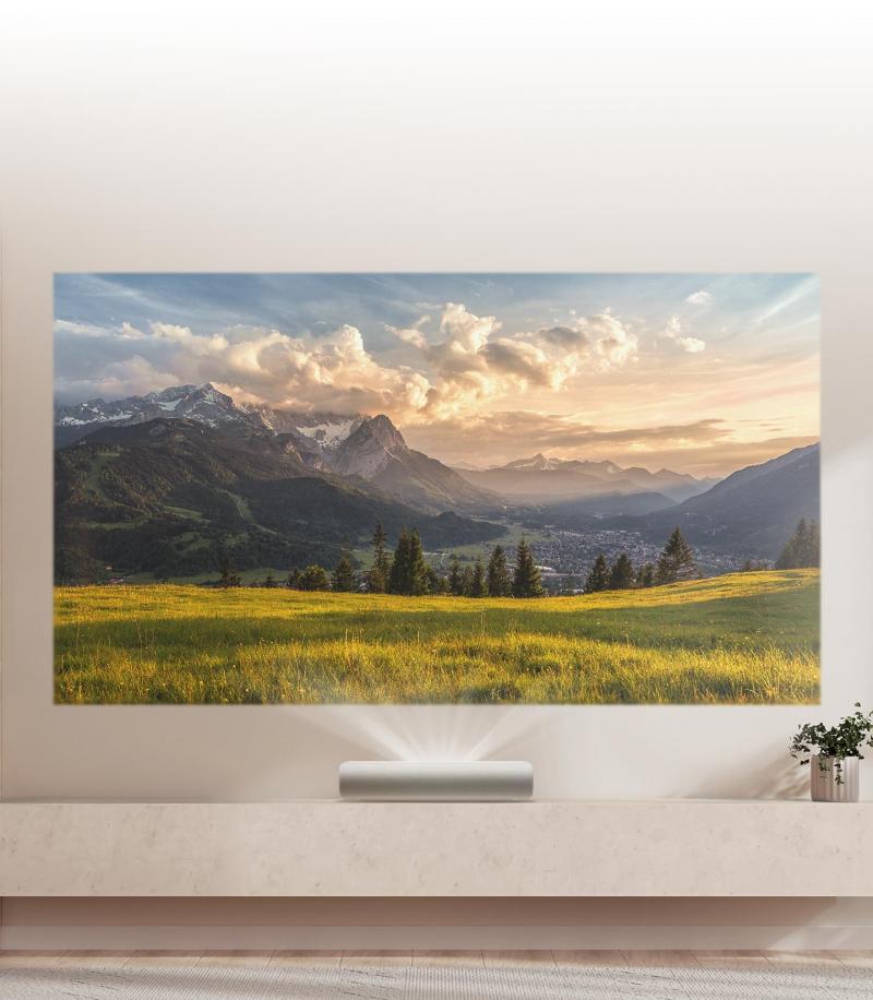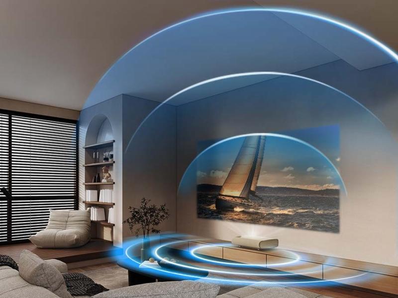 Now you can set up your projector close to the wall. With our ultra-short throw technology, The Premiere 7 needs only a short distance to project cinematic 4K images up to 120 inches in size.