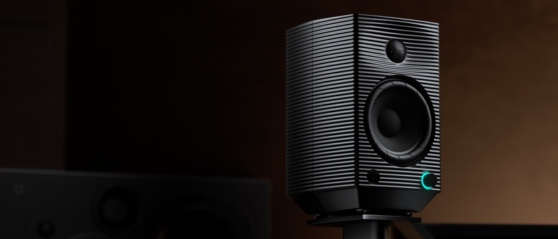 The SP5 tweeter uses a precisely engineered waveguide to optimize near-field listening. It precisely controls the sound's direction, and together with the horizontal stripes on the front, greatly expands the soundstage.