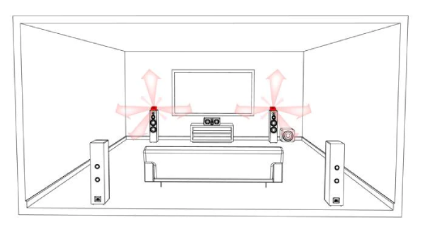 Up or Down-Firing Front, LCR or Center Channel Speaker - Placed above or below the viewing area, directed at listener, when placement at ear level isn’t possible.