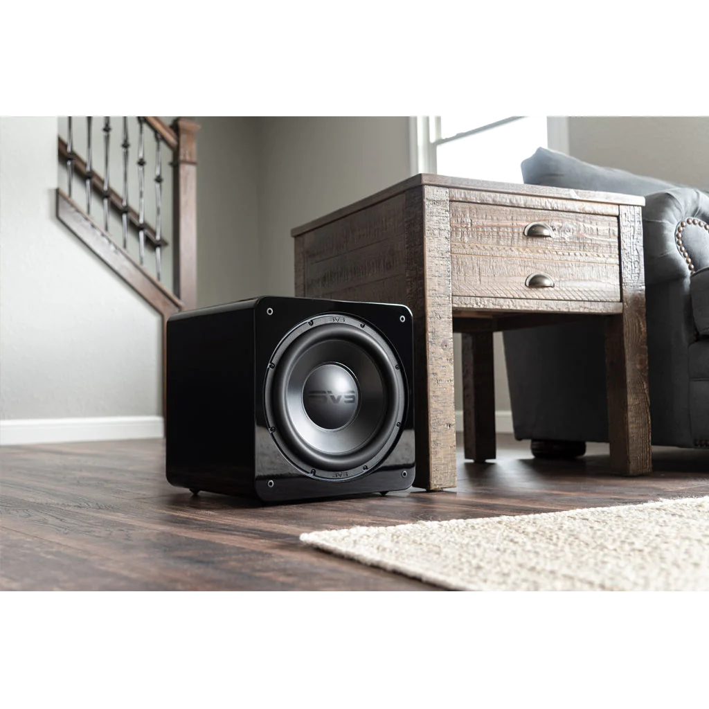 - Front-firing 12-inch high-excursion SVS driver