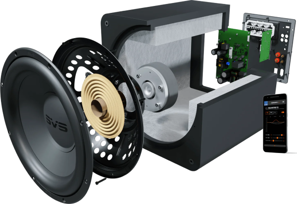 SB-1000 Pro also features the SVS subwoofer smartphone app, the most convenient way to control volume, access multiple DSP functions, and program custom presets. Adjust crossover frequencies, a three-band parametric EQ, polarity, room gain and more, all from your favorite seat.