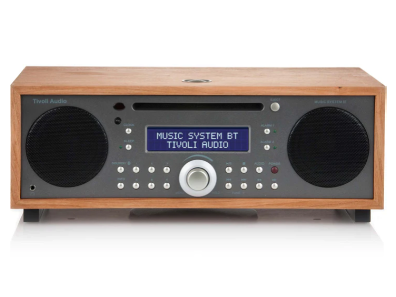 A great sounding, compact audio system. The all-in-one Music System BT offers AM and FM radio, CD, and Bluetooth for audio playback in stereo with additional bass provided from the down-firing subwoofer. An easy-to-see display, digital clock with battery back-up, full-function remote control, snooze and sleep timer, and dual, independent alarms are also onboard. Take all of this and house it in a hand-crafted, real-wood cabinet, and you have our complete all-in-one system.