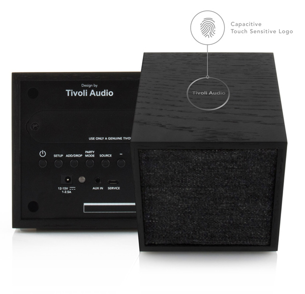 | CONTROLS & PLAYBACK | Free Tivoli Audio Wireless App to control speaker(s) over your home wireless network and configure advanced wireless playback options. (Made for iOS and Android devices), Stream up to CD quality music from services such as Spotify, Deezer, Tidal, QQ, and your own personal library via your standard home wireless network, Multi group configuration, allowing simultaneous audio playback of multiple songs to various speakers, Send your Bluetooth® wireless stream to other speakers via your wireless network, Hidden capacitive touch wood for Play/Pause control, Join/Drop button to cycle your speaker through the music playing elsewhere in your home, Quick connect Party Mode button to quickly spread the music around your home, Volume controls, 3 inch long throw full-range driver |