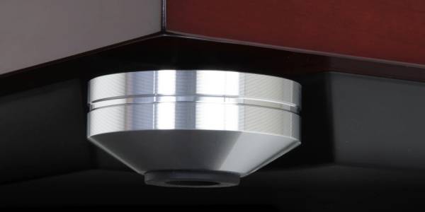 The insulating feet comprise a machined aluminum shell, topped with a rubber cushion that is fixed to the high-density MDF plinth. Thanks to their excellent shock absorption characteristics, the TN-3B-SE is very resistant to acoustic feedback.