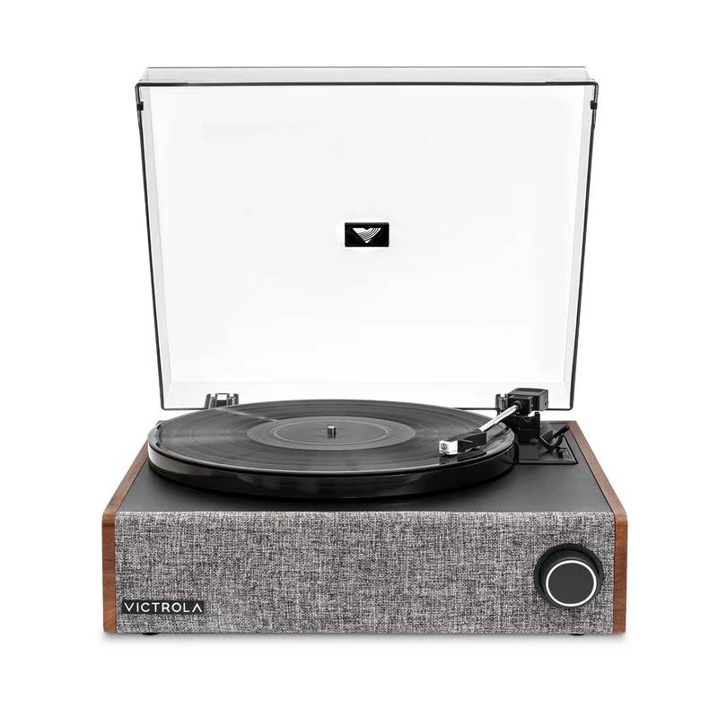 The Victrola Eastwood LP is the first full-size record player in the Eastwood lineup, serving up a 12-inch platter, more prominent speakers, and a stunning modern design. The Eastwood LP features a 3-speed, belt-driven turntable and a premium Audio-Technica AT-3600LA cartridge for superior tracking and sound quality. Listen to music from your smart device via Bluetooth®, or stream vinyl to any external Bluetooth speaker with Vinyl Stream Technology.