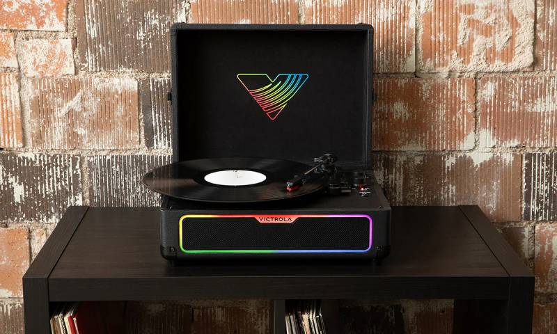 Use Bluetooth to stream music wirelessly to the built-in speakers, or take advantage of VINYLSTREAM™ Bluetooth output to send your vinyl audio to external Bluetooth speakers or headphones. RCA and headphone outputs, along with an aux input, give you even more ways to listen. The compact suitcase design blends classic styling with modern performance, making it a perfect fit for bedrooms, dorms, offices, or any small space. With a colorful light display, enhanced sound, and versatile connectivity, the Victrola Journey Glow adds personality and performance to any music setup. Whether you're enjoying a quiet night in or setting the mood for your next get-together, it's a turntable that truly shines.