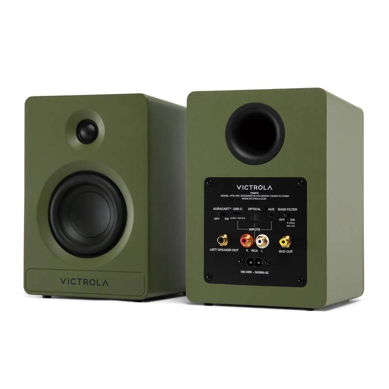 Victrola Tempo Bluetooth Bookshelf Speakers - VPS-400-GRN