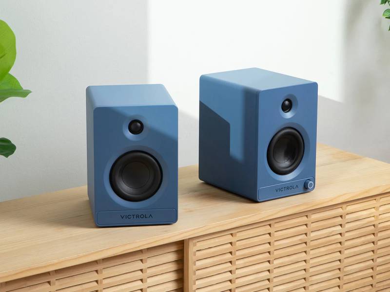 Victrola Tempo Bookshelf Speakers deliver powerful, room-filling sound, providing an immersive listening experience for music lovers and vinyl enthusiasts alike.